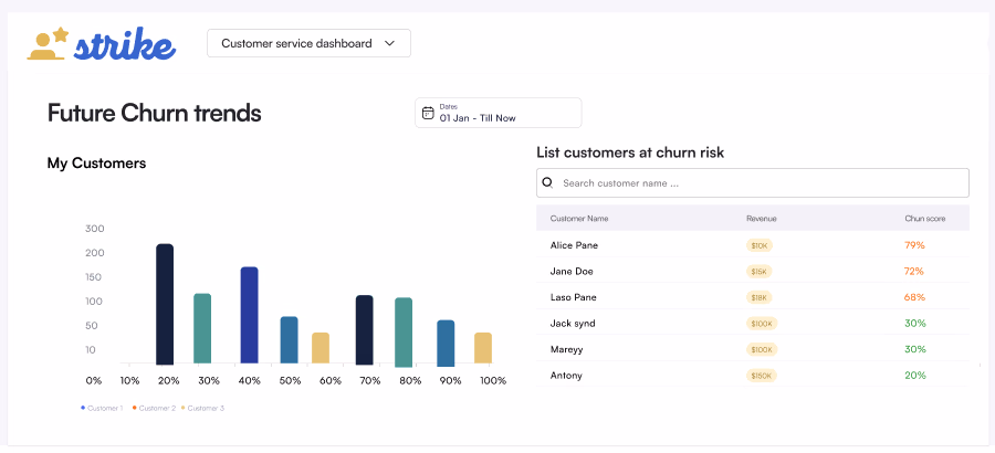 Meet Strike, the SaaS product you need, to analyze customer turnover and predict churn trends to safeguard your most valuable customers.